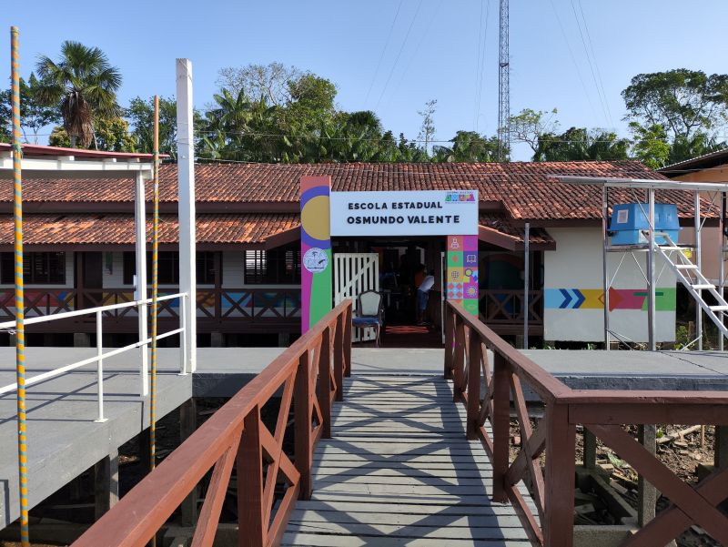 A revitalização da Escola Osmundo Valente Barreto incluiu serviços na infraestrutura elétrica e hidráulica, e construção de trapiche para embarque e desembarque da comunidade escolar, proporcionando mais segurança para alunos e funcionários, oferecendo um local adequado para um ensino.
