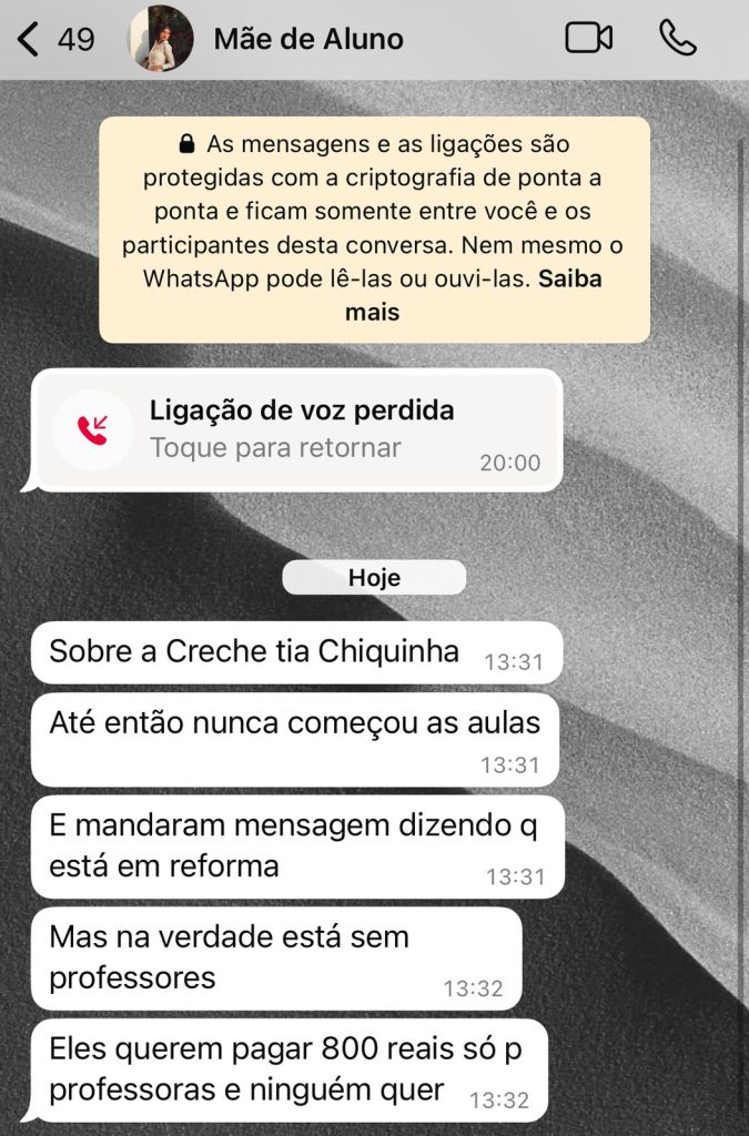 Em busca de esclarecimentos, os responsáveis tentaram contato com a Secretaria Municipal de Educação, mas não obtiveram respostas. Diante da falta de retorno, procuraram o portal para tornar pública a denúncia.